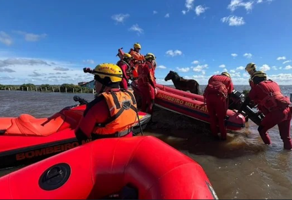 Nesta terça-feira, 14 de maio, o CBMRS, foi acionado para resgatar um pônei que estava ilhado em uma estreita faixa de terra, na ilha da Torotama, município do Rio Grande.